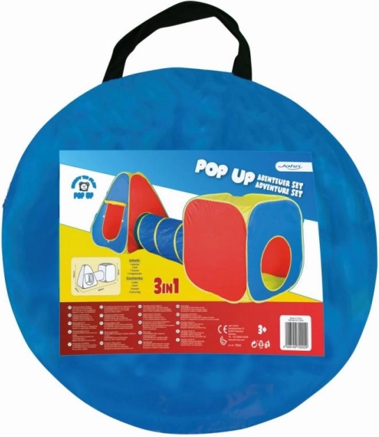 Διασκεδαστικό σετ pop-up σκηνών 3 σε 1 που μετατρέπει το δωμάτιο ή τον κήπο σε παιδική χαρά. Περιλαμβάνει κυβική σκηνή, τούνελ και pop-up σκηνή, που μπορούν να χρησιμοποιηθούν μαζί ή ξεχωριστά. Η γρήγορη εγκατάσταση χωρίς κόπο, η ελαφριά κατασκευή και η εύκολη αποθήκευση εξασφαλίζουν άνετο παιχνίδι μέσα και έξω.