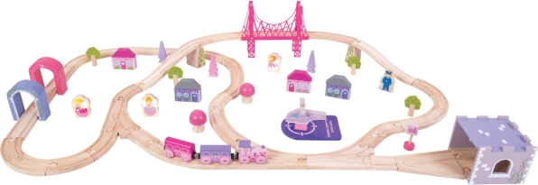 Αυτή η σιδηροδρομική πίστα είναι ιδανική για παιδιά που αγαπούν το παραμυθένιο και πριγκιπικό θέμα. Το σετ περιλαμβάνει 75 κομμάτια, όπως γέφυρες, τούνελ, σπιτάκια και δέντρα, επιτρέποντας στα παιδιά να δημιουργήσουν τον δικό τους μαγικό κόσμο.