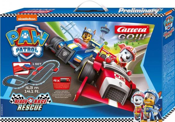 Διασκεδαστική πίστα CARRERA GO με θέμα την Περιπολία με τα Πατουσάκια (Paw Patrol) προσφέρει σε παιδιά από 5 ετών μια διαδρομή μήκους 4,3 m με αυτοκινητάκια των Chase και Marshall. Το σετ περιλαμβάνει άλμα, γέφυρα, ευθείες και στροφές και τροφοδοτείται με μπαταρίες με δυνατότητα προσθήκης μετασχηματιστή. Συμβατό με αυτοκίνητα και εξαρτήματα GO!!! για ακόμη περισσότερη διασκέδαση.