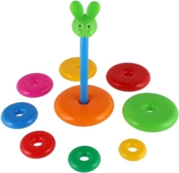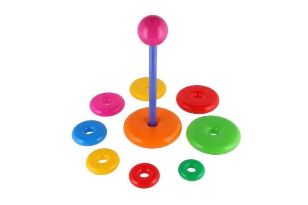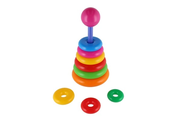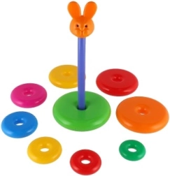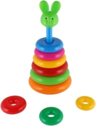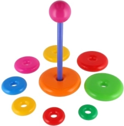 Αυτή η συναρμολογούμενη πυραμίδα με πολύχρωμα δαχτυλίδια είναι ιδανικό πρώτο κατασκευαστικό παιχνίδι. Τα παιδιά περνούν τα δαχτυλίδια στη ράβδο και τα τοποθετούν από το μεγαλύτερο στο μικρότερο, εξασκώντας φυσικά τη λεπτή κινητικότητα, την υπομονή και τη λογική σκέψη. Η βάση αποτελείται από σταθερή πλαστική βάση με ράβδο και αποσπώμενο επάνω μέρος (ανάλογα με την εκδοχή).