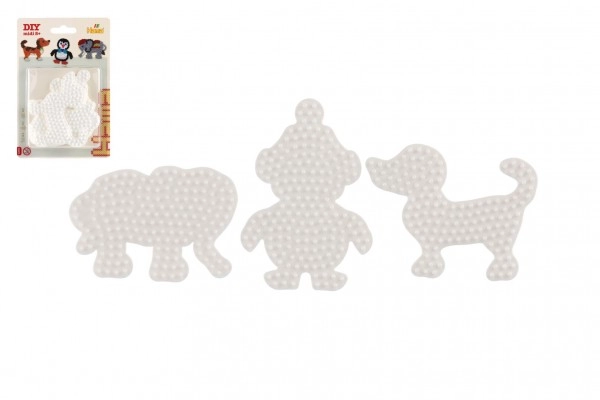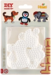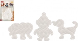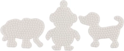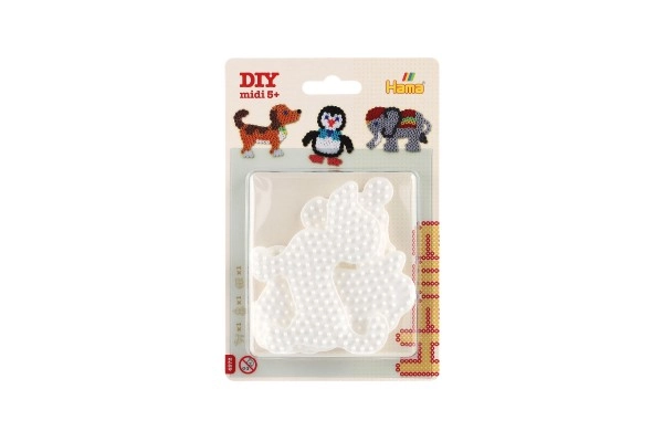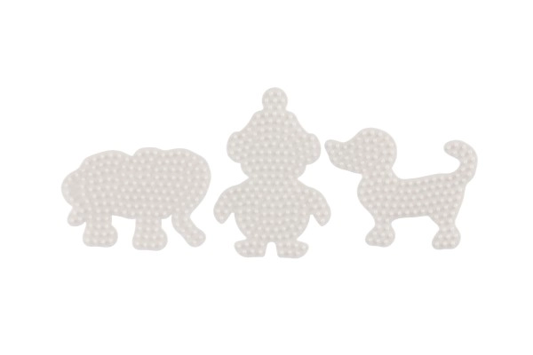 Το σετ βάσεων Hama για σιδερωτές χάντρες επιτρέπει σε παιδιά από 5 ετών να δημιουργούν πολύχρωμες εικόνες χάρη στις λευκές πλαστικές βάσεις σε σχήμα ελέφαντα, πιγκουίνου και σκυλακιού.