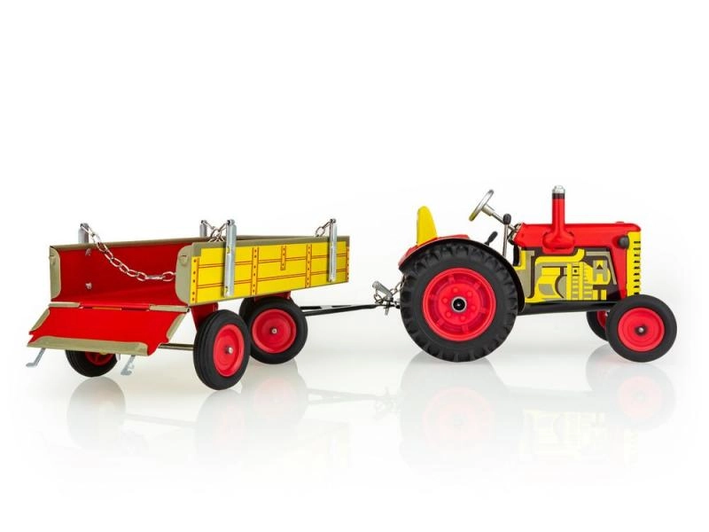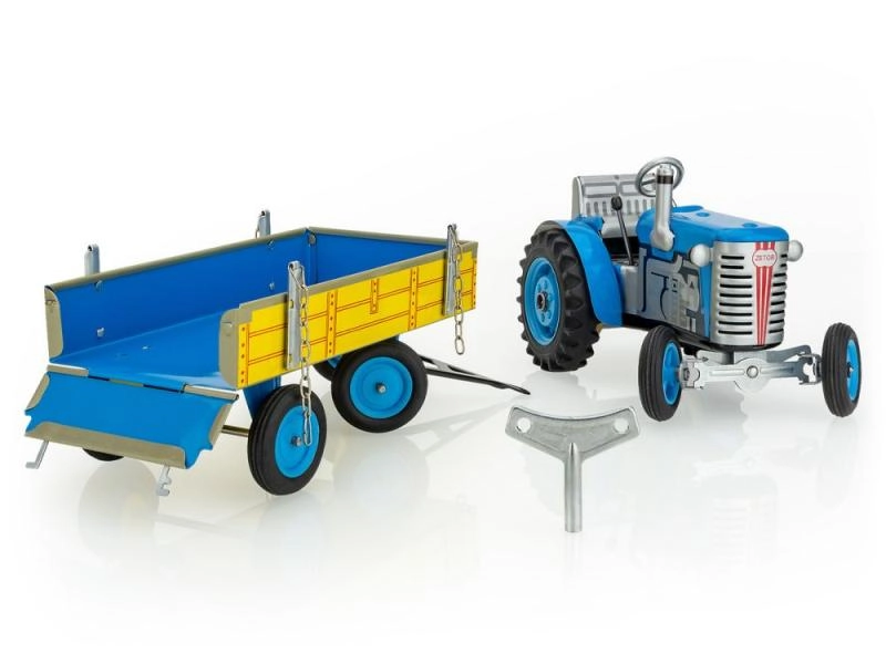 Κλασικό μεταλλικό παιχνίδι για μικρούς και μεγάλους φίλους της αγροτικής τεχνολογίας: τρακτέρ Zetor με αποσπώμενο τρέιλερ με ελατηριωτό μηχανισμό με κλειδί. Προσφέρει 3 ταχύτητες (εμπρός, νεκρά, όπισθεν), λειτουργικό τιμόνι και χειρόφρενο. Άψογη τσεχική χειροποίητη κατασκευή, πιστοποίηση Ασφαλούς Παιχνιδιού και ανθεκτική κατασκευή από τυπωμένο λαμαρίνα με πλαστικούς τροχούς.