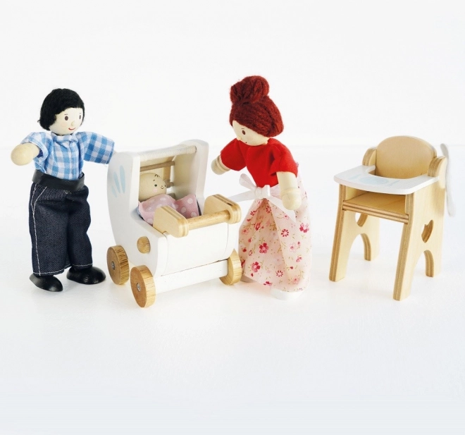 Χαριτωμένο ξύλινο σετ για ευφάνταστο παιχνίδι με μωρό από τη μάρκα LE TOY VAN. Περιλαμβάνει καροτσάκι, ψηλή καρέκλα φαγητού, σετ φαγητού και τσάντα. Τα υφασμάτινα αξεσουάρ είναι ραμμένα στο χέρι και όλα τα μέρη είναι φτιαγμένα από ποιοτικό καουτσουκόδενδρο. Το παιχνίδι είναι διακοσμημένο με μη τοξικά χρώματα με βάση το νερό, είναι ηθικά κατασκευασμένο και ενισχύει τη δημιουργικότητα, την λεπτή κινητικότητα και τον συντονισμό.