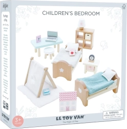 Αυτό το κομψό σετ 24 τεμαχίων για παιδικό δωμάτιο κουκλόσπιτου περιλαμβάνει κρεβάτια με μαξιλάρια και παπλώματα, κομοδίνο με λαμπάκι, καρεκλάκι, χαλί και διακοσμήσεις που προσδίδουν ρεαλιστική εμφάνιση. Οι ξύλινες λεπτομέρειες και οι απαλές παστέλ αποχρώσεις χαρίζουν στυλ και κομψότητα. Κατασκευασμένο με ηθικό τρόπο από βιώσιμα υλικά και βαμμένο με μη τοξικά χρώματα με βάση το νερό.