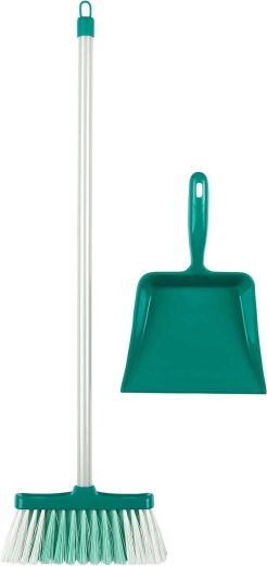Η μακριά λαβή της σκούπας και οι μαλακές τρίχες επιτρέπουν στα παιδιά να μιμούνται με ασφάλεια το σκούπισμα. Το βουρτσάκι με το φαρασάκι βοηθά στη «συλλογή» ψίχουλων και σκόνης.