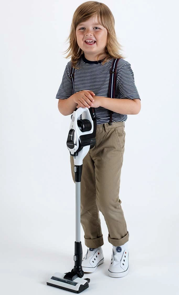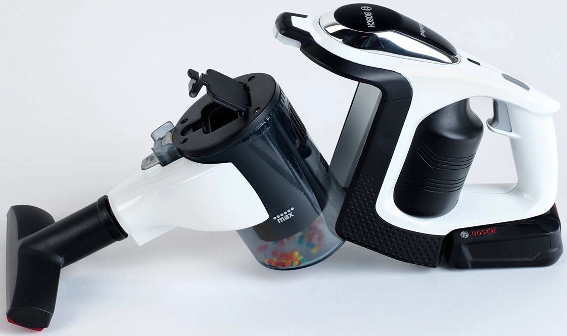 Η αυθεντική παιδική σκούπα BOSCH Unlimited σε λευκό‑μαύρο με ασημί σωλήνα μιμείται πιστά μια πραγματική συσκευή. Χάρη στο LED φωτισμό και τις περιστρεφόμενες μπιλίτσες στον διαφανή δοχείο, δείχνει πολύ ρεαλιστική κατά το “σκούπισμα”, παραμένοντας πλήρως ασφαλής για παιχνίδι.