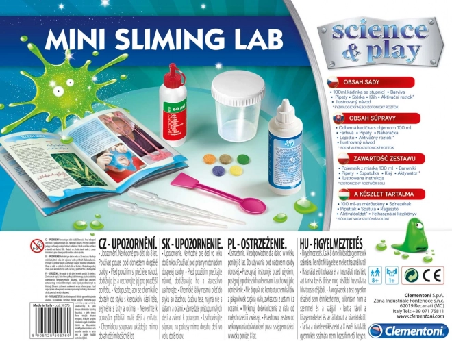 Το σετ Clementoni Science & Play Μικρό εργαστήριο για την παραγωγή σλάιμ είναι ιδανικό για όλους τους μικρούς λάτρεις της χημείας! Με τη βοήθεια αυτού του σετ τα παιδιά θα ανακαλύψουν τα μυστικά των χημικών αντιδράσεων και των ιξωδών υγρών με διασκεδαστικό και ασφαλή τρόπο.