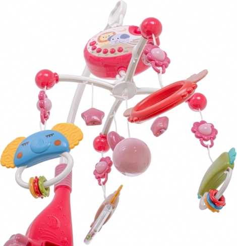 Το καρουζέλ με γλυκά ζωάκια τραβά την προσοχή του μωρού και υποστηρίζει την αισθητηριακή του ανάπτυξη. Ο προβολέας προβάλλει απαλά μοτίβα αστεριών στο ταβάνι, ενώ έως και 40 χαλαρωτικές μελωδίες δημιουργούν ευχάριστη ατμόσφαιρα για ύπνο. Η περιστροφή των κρεμαστών μιμείται τον ήρεμο ρυθμό που αγαπούν τα παιδιά.