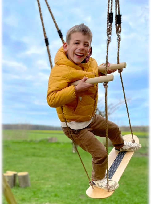 Αυτή η ασυνήθιστη κούνια συνδυάζει διασκέδαση και ανάπτυξη κινητικών δεξιοτήτων. Η σανίδα από ανθεκτικό κόντρα πλακέ με ανασηκωμένες άκρες και οι ρυθμιζόμενες χειρολαβές από μασίφ ξύλο επιτρέπουν στα παιδιά να προπονούν με ασφάλεια ισορροπία, συντονισμό και σταθερότητα. Χάρη στην αντιολισθητική επιφάνεια, το κούνημα σε όρθια στάση είναι πιο σίγουρο και άνετο.
