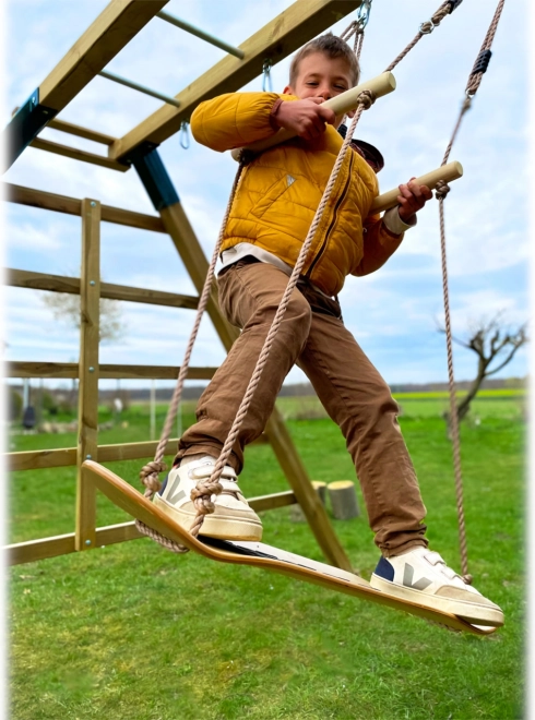 Οι στιβαρές ξύλινες χειρολαβές στα σχοινιά μετακινούνται εύκολα στο ιδανικό ύψος. Προσφέρουν στήριξη στο ανέβασμα και στο κούνημα σε όρθια στάση.