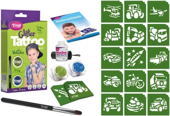 Ανακαλύψτε τη συλλογή λαμπερών τατουάζ που περιλαμβάνει 15 διαφορετικά σχέδια με θέματα μεταφορικών μέσων και 2 χρωματικούς συνδυασμούς. Κάθε σχέδιο είναι σχεδιασμένο να διαρκεί στο δέρμα σας 8 – 18 ημέρες, ανάλογα με τον τύπο του δέρματός σας και τον βαθμό προσοχής κατά την εφαρμογή.