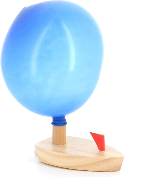 Φέρτε το παιχνίδι στο σπίτι με αυτή τη ξύλινη βαρκούλα με μπαλονάτη πρόωση. Τα παιδιά μπορούν εύκολα να φουσκώσουν το μπαλόνι, να το συνδέσουν στη βαρκούλα και να δουν πώς πλέει μπροστά. Αυτός ο απλός αλλά αποτελεσματικός σχεδιασμός διδάσκει στα παιδιά τον κανόνα της κίνησης ενώ τα διασκεδάζει. Ιδανικό παιχνίδι για διασκεδαστικές στιγμές στη μπανιέρα ή στην πισίνα.