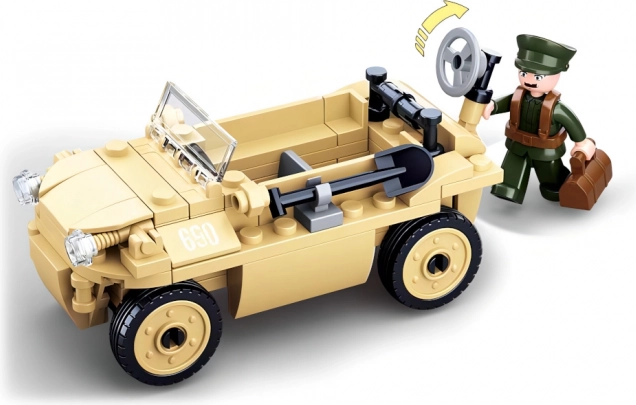 Βυθιστείτε στον κόσμο της δημιουργικής διασκέδασης με αυτό το λεπτομερές σετ Sluban, που παρουσιάζει ρέπλικες γερμανικών στρατιωτικών οχημάτων του Δευτέρου Παγκοσμίου Πολέμου. Το σετ περιλαμβάνει 106 κομμάτια και μια αυθεντική φιγούρα με περιστρεφόμενα και αρθρωτά μέρη, επιτρέποντας παιχνίδι με πρόσθετα αξεσουάρ.