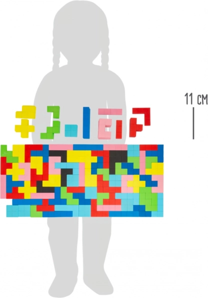 Ανακαλύψτε τον δημιουργικό κόσμο των πολύχρωμων σχημάτων με το Small Foot – ξύλινο μωσαϊκό με 114 κομμάτια, εμπνευσμένο από το κλασικό «tetris». Καλλιεργεί τη λεπτή κινητικότητα, τη λογική σκέψη, την δημιουργικότητα και την αναγνώριση χρωμάτων και σχημάτων. Κατασκευασμένο από ανθεκτικό κόντρα πλακέ με μη τοξικά χρώματα, συσκευασμένο σε πρακτικό κουτί για εύκολη τακτοποίηση και μεταφορά.