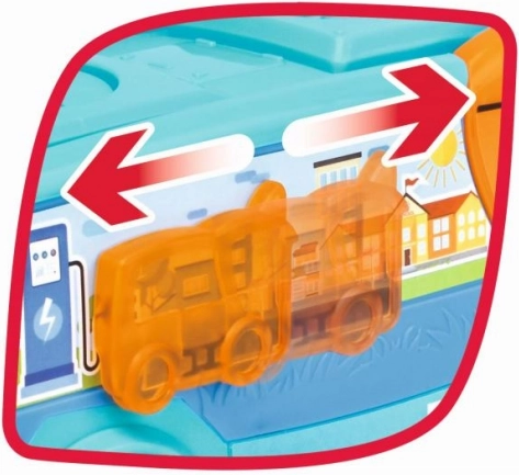 Τα παιδιά μπορούν να ανοίγουν τις πόρτες και να κινούν το πλευρικό στοιχείο, ενισχύοντας τη λεπτή κινητικότητα και δημιουργώντας ρεαλιστικές σκηνές πόλης.