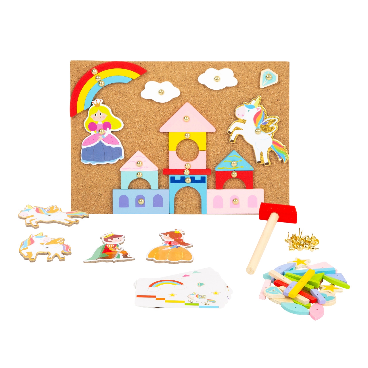 Βουτήξτε στον μαγικό κόσμο της δημιουργικής διασκέδασης με το Παιχνίδι Καρφώματος Μονόκερος. Αυτό το παιχνίδι επιτρέπει στα παιδιά σας να δημιουργούν διάφορες σκηνές και ιστορίες με τη βοήθεια του σφυριού και των πολύχρωμων ξύλινων σχημάτων. Το σετ περιλαμβάνει επίσης πρότυπα που μπορούν να εμπνεύσουν τα παιδιά να δημιουργήσουν παραμυθένιες εικόνες.