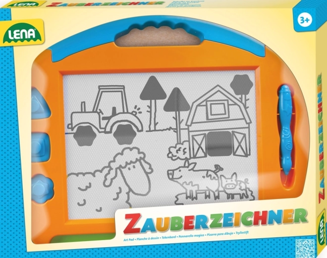 Αυτός ο μαγνητικός πίνακας είναι ιδανικό παιχνίδι για τα πρώτα σχέδια και την εκμάθηση σχημάτων. Χάρη στην πρακτική συρόμενη μπάρα, η εικόνα σβήνεται αμέσως και μπορείτε να ξεκινήσετε ξανά – χωρίς ακαταστασία και χωρίς χαρτί. Η γραφίδα με μεταλλική μύτη είναι δεμένη με κορδόνι, ώστε να μη χάνεται, και οι τρεις μαγνητικές σφραγίδες βοηθούν στη δημιουργία διασκεδαστικών μοτίβων.