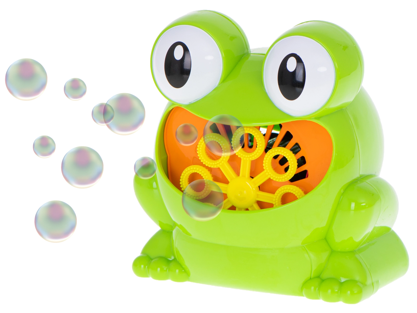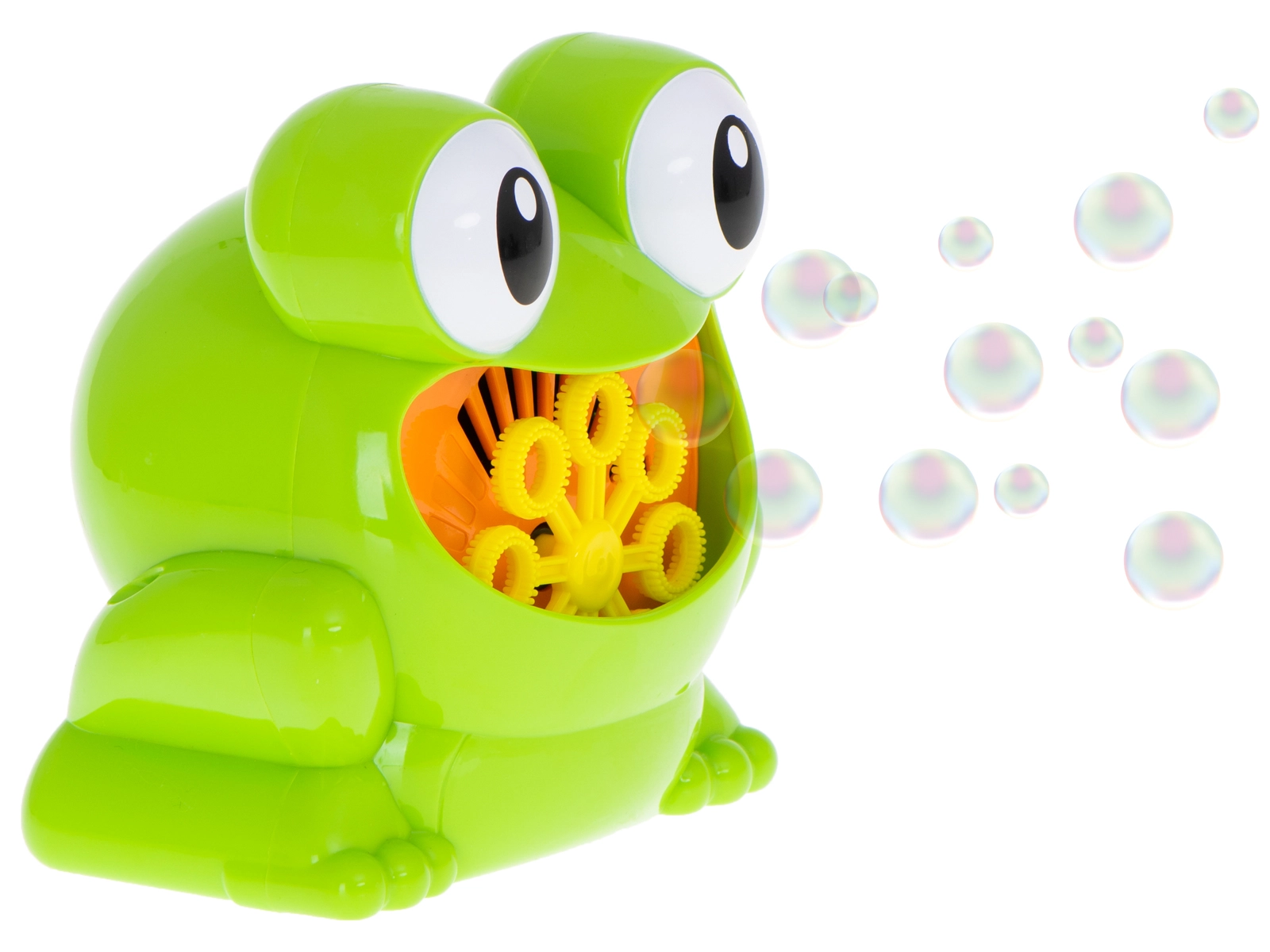 Μετά την προσθήκη του διαλύματος και το πάτημα του κουμπιού, το βατραχάκι ξεκινά αμέσως να βγάζει πολύχρωμες φυσαλίδες – ιδανικό για καθημερινό παιχνίδι και γιορτές.