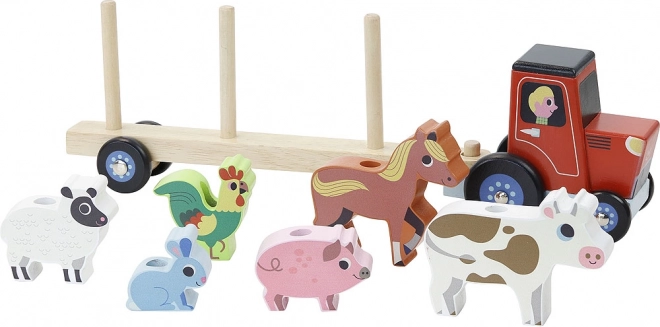 Το χαρούμενο ξύλινο τρακτέρ VILAC με αποσπώμενο ρυμουλκούμενο και έξι χαριτωμένα ζωάκια (λαγός, πρόβατο, κόκορας, άλογο, γουρούνι, αγελάδα) είναι ιδανικό παιχνίδι για παιδιά από 2 ετών. Με την τοποθέτηση των φιγούρων και την οδήγηση με το ρυμουλκούμενο τα παιδιά εξασκούν την συντονισμένη κίνηση χεριού–ματιού, την υπομονή και τη φαντασία.
