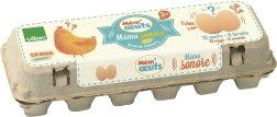Το ηχητικό παιχνίδι μνήμης σε σχήμα αυγών, σε κλασική χάρτινη συσκευασία, είναι ιδανικό για την ανάπτυξη των αισθητηριακών ικανοτήτων των παιδιών. Το παιχνίδι ενισχύει τη μνήμη καθώς τα παιδιά αναζητούν ζευγάρια αυγών με τον ίδιο ήχο.