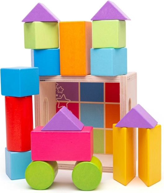 - Το σετ περιλαμβάνει 17 πολύχρωμα τουβλάκια διαφόρων σχημάτων, που υποστηρίζουν την ανάπτυξη δεξιοτήτων και τον συντονισμό χεριού-ματιού.