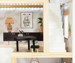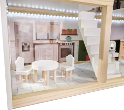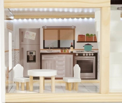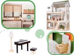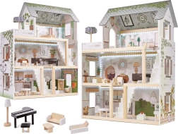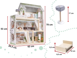 Η ασφάλεια είναι προτεραιότητα: όλες οι ακμές είναι λεία γυαλισμένες και ο συνδυασμός ποιοτικής πλάκας MDF, στιβαρών συνδέσεων και σταθερής κατασκευής εξασφαλίζει μεγάλη αντοχή. Η παλέτα παστέλ, γήινων τόνων ταιριάζει με τα μοντέρνα παιδικά δωμάτια και κάνει το κουκλόσπιτο εντυπωσιακό διακοσμητικό στοιχείο.