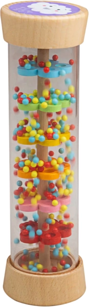 Ο κυλινδρικός κύλινδρος βροχής Bigjigs Baby είναι ένα αισθητηριακό παιχνίδι που συναρπάζει τα παιδιά με τον χαλαρωτικό του ήχο και τα ζωηρά χρώματα. Στο εσωτερικό του διαφανούς κυλίνδρου, οι μπίλιες κινούνται πάνω από χρωματιστούς δίσκους, μιμούμενες μια απαλή βροχή. Και τα δύο άκρα κοσμούνται από χαριτωμένα μοτίβα ήλιου και σύννεφου που ενισχύουν την οπτική αντίληψη.