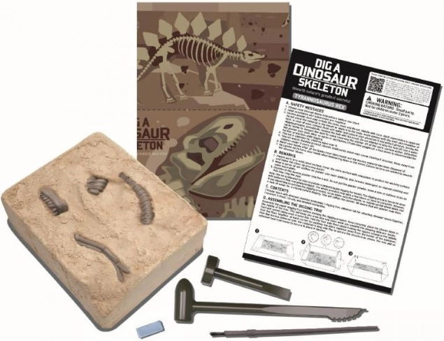 Το σετ περιλαμβάνει γύψινο μπλοκ με οστά, βασικά εργαλεία ανασκαφής και οδηγίες. Αρκεί να ανοίξετε το κουτί και να ξεκινήσετε την εξερεύνηση – ιδανική δραστηριότητα για απόγευμα ή σαββατοκύριακο.