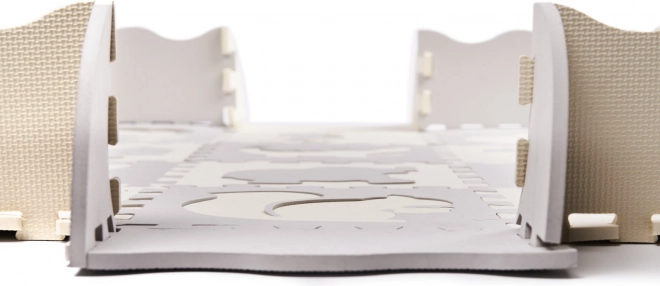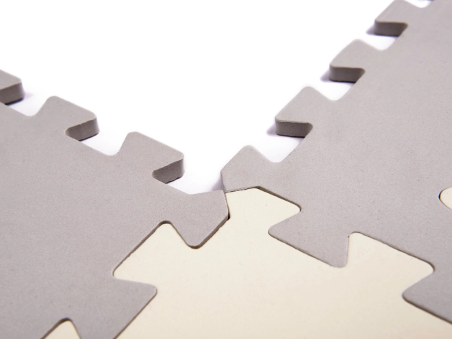 Ένα μαλακό παιδικό χαλάκι από αφρώδη παζλ με αποσπώμενα σχήματα δημιουργεί έναν ασφαλή και δημιουργικό χώρο για παιχνίδι. Χάρη στα υπερυψωμένα άκρα μπορείτε να συναρμολογήσετε έναν περίφραχτο χώρο παιχνιδιού που κρατά τα παιχνίδια μέσα. Το χαλάκι είναι αδιάβροχο, έχει αντιολισθητική επιφάνεια και απορροφά τους κραδασμούς, ιδανικό για τα πρώτα βήματα. Οι ουδέτεροι γκρι και εκρού τόνοι ταιριάζουν σε κάθε εσωτερικό χώρο.