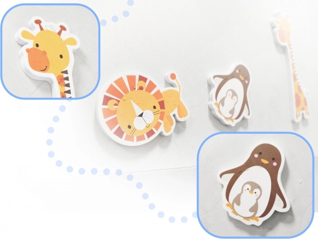 Ανακαλύψτε τη μαγεία των παιχνιδιών στο μπάνιο με πολύχρωμα αφρώδη ζωάκια που τα παιδιά πιάνουν εύκολα και μπορούν να τα κολλούν σε βρεγμένα πλακάκια και στα τοιχώματα της μπανιέρας. Τα κομμάτια είναι μαλακά, ανθεκτικά και ασφαλή για τα παιδικά χέρια – δεν χρειάζεται κόλλα, αρκεί το νερό.