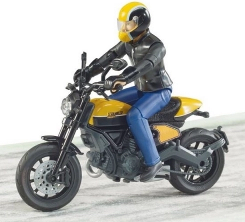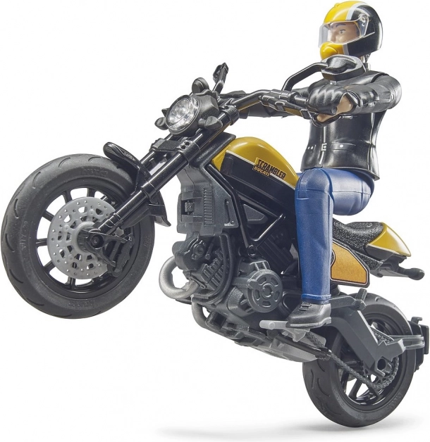 Αυτό το λεπτομερές μοντέλο της μοτοσικλέτας Scrambler DUCATI Cafe Racer από τη BRUDER είναι ιδανικό για μικρούς μοτοσικλετιστές και συλλέκτες. Ο ρεαλιστικός σχεδιασμός, από τα ορατά μέρη του κινητήρα έως το σχήμα της σέλας, συμπληρώνεται από την πλήρως αρθρωτή φιγούρα αναβάτη, που επιτρέπει φυσικές στάσεις οδήγησης και δυναμικές πόζες.