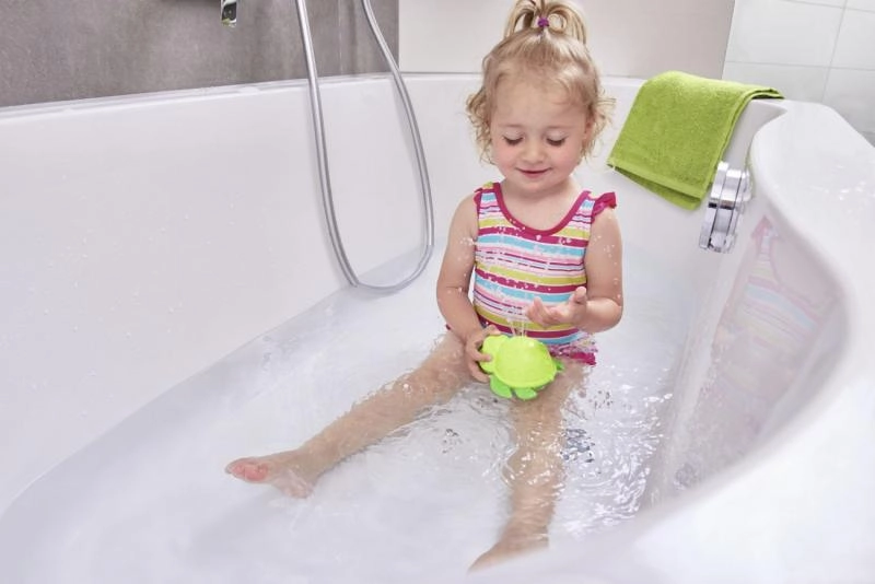 Το χελωνάκι επιπλέει στην επιφάνεια και ψεκάζει απαλά νερό – ιδανικό για ένα διασκεδαστικό μπάνιο και τα πρώτα παιχνίδια με το νερό.