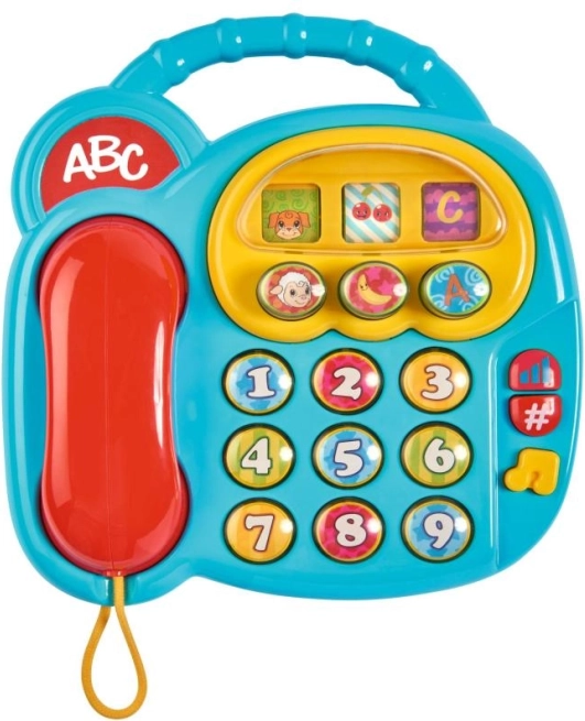 Διασκεδαστικό και εκπαιδευτικό παιδικό τηλέφωνο με ακουστικό που αναπτύσσει τη λεπτή κινητικότητα και διδάσκει αριθμούς, γράμματα, φρούτα και ζωάκια. Με το πάτημα των κουμπιών αναπαράγει ήχους αριθμών, μελωδίες και προσομοιώνει πληκτρολόγηση τηλεφωνικού αριθμού. Στην «οθόνη» εμφανίζονται τυχαίες εικόνες όταν περιστρέφεται, ενισχύοντας την περιέργεια και το παιχνίδι.