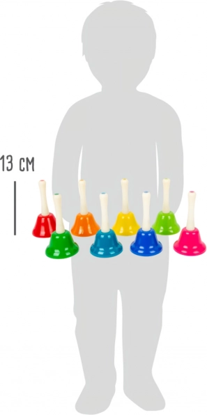 Ανακαλύψτε τη μαγεία της μουσικής με αυτό το σετ οκτώ κουδουνιών, που δεν είναι μόνο όμορφα πολύχρωμο, αλλά και λειτουργικά καλύπτει κάθε τόνο από το C έως το H. Τα παιδιά μπορούν να μάθουν διάφορες μελωδίες, όπως «Ο θείος Ντόναλντ είχε φάρμα», «Τρίγωνα Κάλαντα» και «Λάμψε, λαμπερό αστεράκι». Αυτό το σετ υποστηρίζει τη μουσική αγωγή, την ανάπτυξη του ρυθμού και τη λεπτή κινητικότητα. Ιδανικό για το νηπιαγωγείο και τις πρώτες τάξεις του δημοτικού.