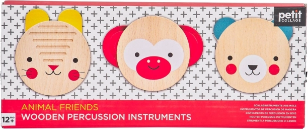 Αυτό το παιχνιδιάρικο σετ τριών κρουστών από την Petit Collage είναι η ιδανική εισαγωγή στον κόσμο της μουσικής. Τα χαρούμενα μοτίβα ζωάκια (μαϊμουδάκι, αρκούδα και κουνελάκι) ενθαρρύνουν τα παιδιά να ανακαλύψουν ρυθμούς και ήχους, υποστηρίζοντας τη φυσική ανάπτυξη της ακοής και της αισθητηριακής αντίληψης.