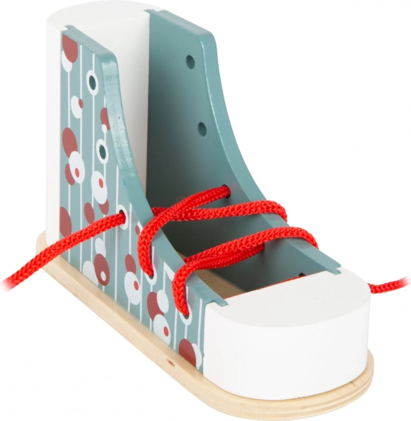 Αυτό το ξύλινο παπούτσι από τη μάρκα Small Foot είναι το ιδανικό εργαλείο για παιδιά που θέλουν να μάθουν να δένουν τα κορδόνια τους. Με μοντέρνο σχεδιασμό και πολύχρωμα μοτίβα, τα παιδιά μαθαίνουν μέσω του παιχνιδιού, βελτιώνουν τον συντονισμό και την υπομονή τους. Χάρη στην σταθερή κατασκευή του, το παπούτσι αντέχει στις προσπάθειες δεσίματος και είναι κατάλληλο ακόμη και για μικρά παιδιά προσχολικής ηλικίας.