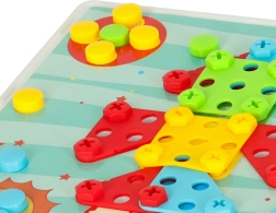 Μεγάλο σετ χρωματιστών βιδών, πλακιδίων και κομματιών σε διάφορα σχήματα που ξυπνούν τη δημιουργικότητα και ενθαρρύνουν την αυτόνομη κατασκευή μωσαϊκών και μοντέλων.
