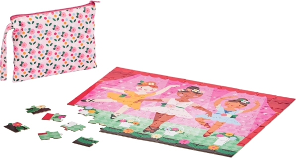 Ανακαλύψτε τη μαγεία του μπαλέτου με παιχνιδιάρικο τρόπο. Το παζλ 2σε1 διπλής όψης με θέμα τις μπαλαρίνες προσφέρει στα παιδιά διπλή διασκέδαση, ενώ ταυτόχρονα υποστηρίζει τη λεπτή κινητικότητα, τη συγκέντρωση και την αναγνώριση χρωμάτων και σχημάτων. Χάρη στις συμπαγείς διαστάσεις και το πουγκί με φερμουάρ, το παζλ είναι εξαιρετικός σύντροφος για εκδρομές και διακοπές.