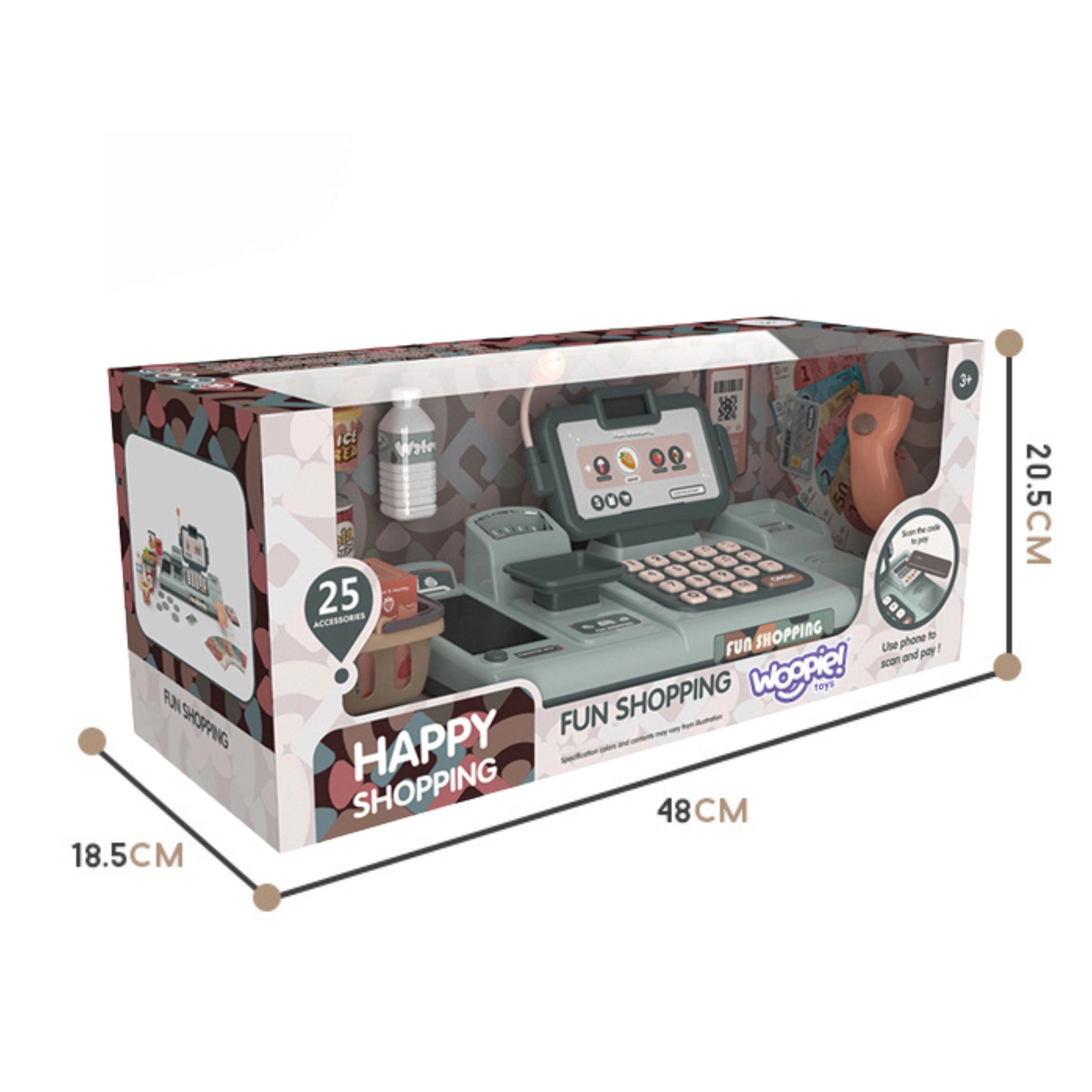 Το ταμείο Woopie διαθέτει ρεαλιστική οθόνη LCD και ηχητικό σαρωτή προϊόντων, που χαρίζουν αυθεντικότητα στο παιχνίδι καταστήματος.