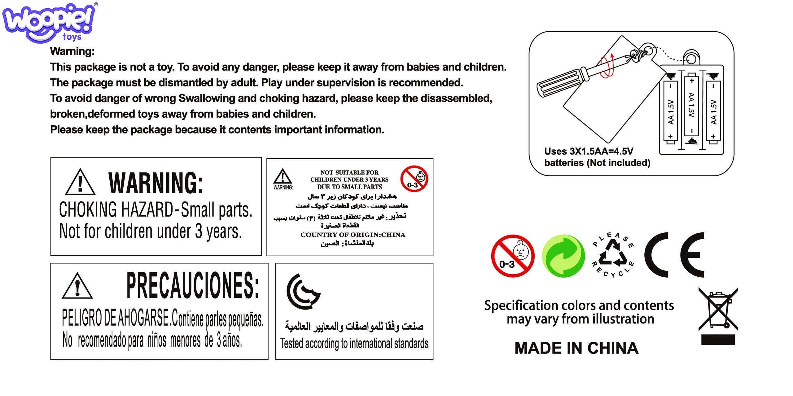 Τα προϊόντα δεν προορίζονται για κατανάλωση. Απαιτούνται τρεις μπαταρίες AA (δεν περιλαμβάνονται).