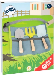 Το φτυαράκι, η τσουγκράνα και το φτιαράκι χώματος σε παιδικό μέγεθος είναι φτιαγμένα από ανθεκτικό μέταλλο. Οι λείες ξύλινες λαβές εφαρμόζουν καλά στα μικρά χεράκια και υποστηρίζουν σταθερό κράτημα.