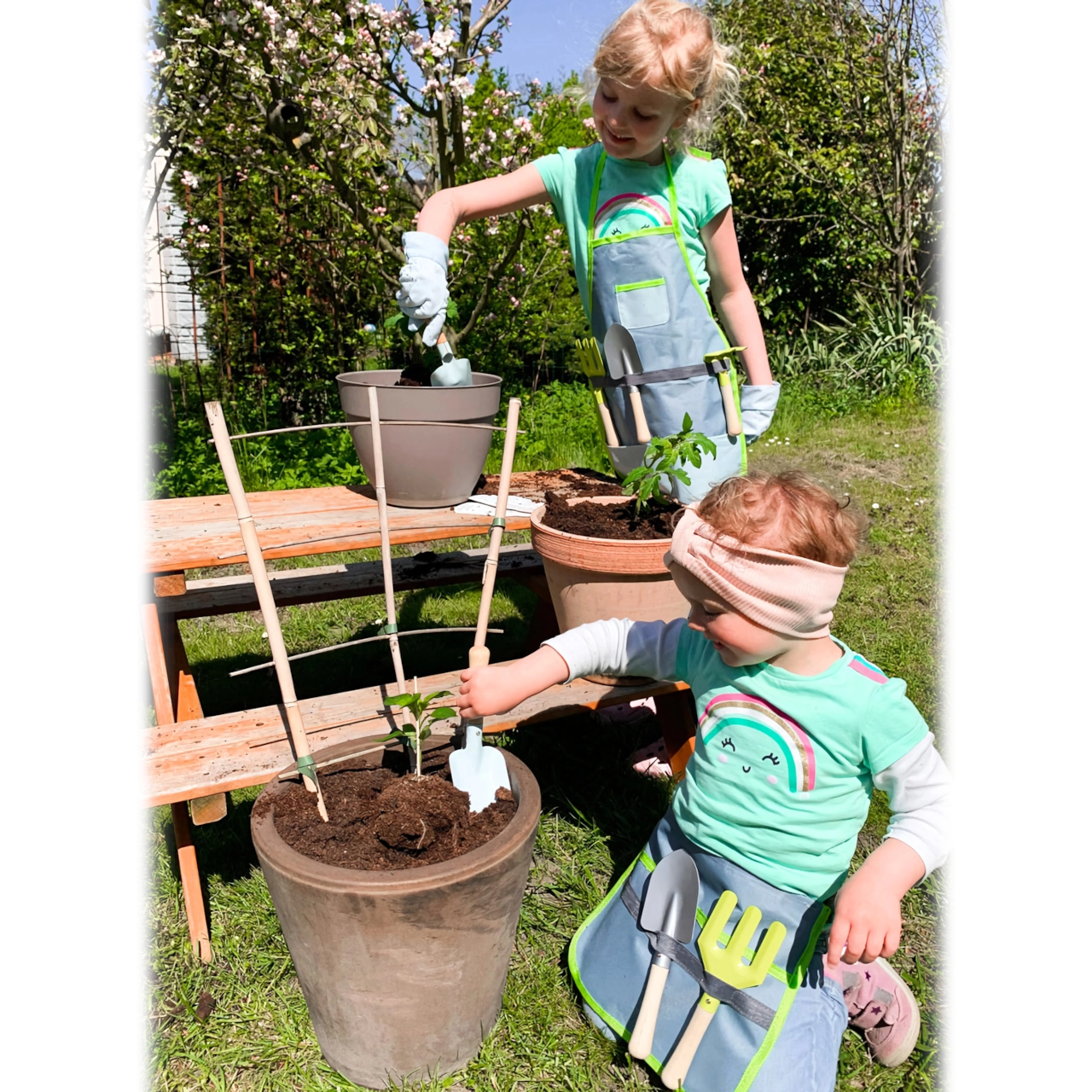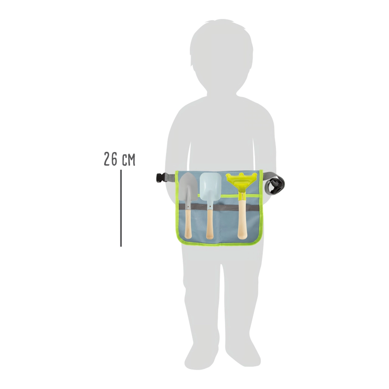 Αυτό το έξυπνο σετ συνδυάζει ένα άνετο τσαντάκι μέσης με πρακτικά εργαλεία, ώστε τα παιδιά να μπορούν εύκολα να φυτεύουν, να αφρατεύουν και να μεταφέρουν χώμα. Μεταλλικά εργαλεία με λείες άκρες και ξύλινες λαβές προσαρμοσμένα στα μικρά χέρια, αντέχουν και στον πιο ενθουσιώδη παιδικό ρυθμό. Το τσαντάκι με ρυθμιζόμενη ζώνη κρατά τα εργαλεία πρόχειρα και επιτρέπει ελεύθερη, ασφαλή κίνηση.