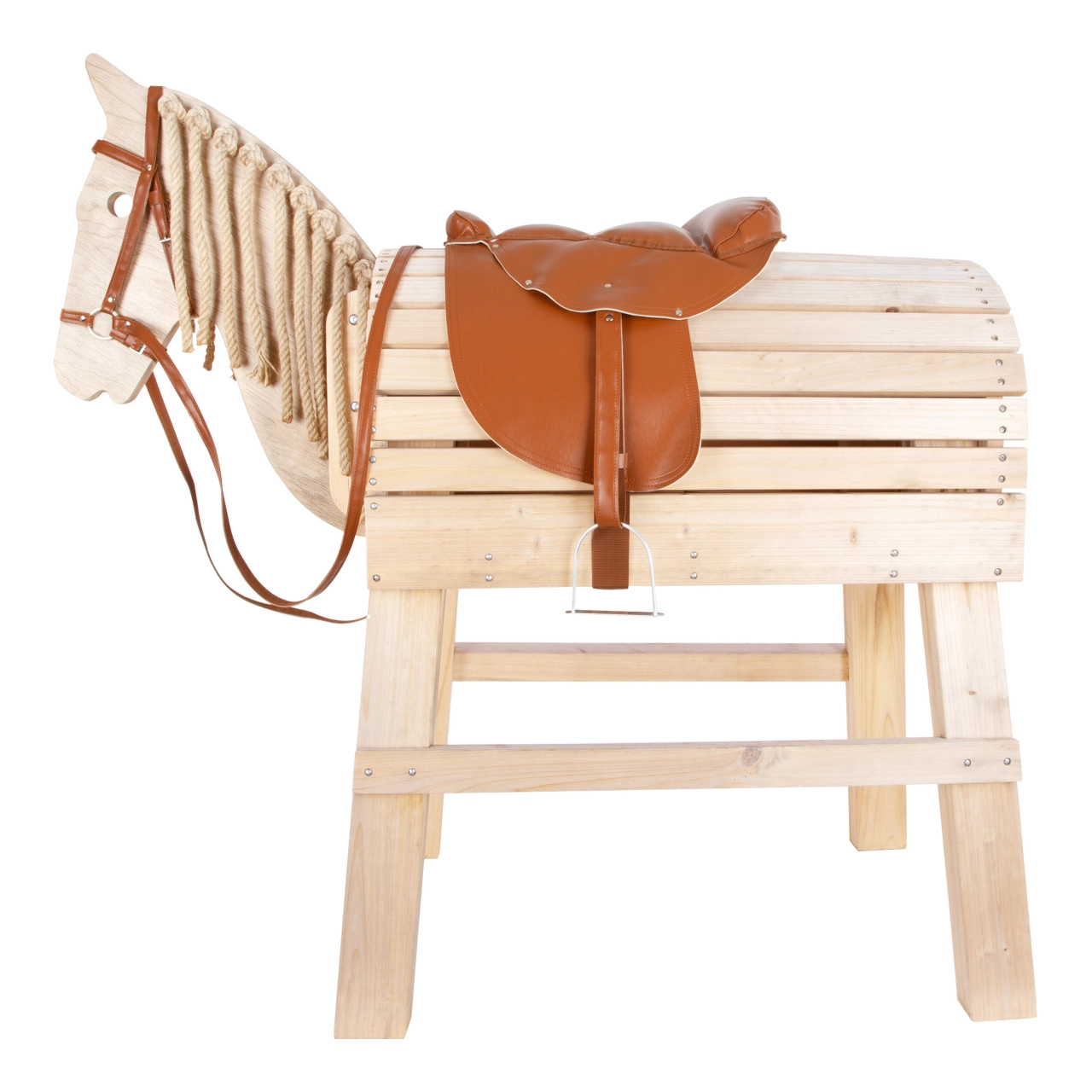 Ο χαλινός χωρίς στομίδα και η καθολική γραμμή της σέλας είναι ιδανικά για τα περισσότερα παιδικά ξύλινα και κουνιστά άλογα και ενισχύουν το ρεαλιστικό παιχνίδι ρόλων.