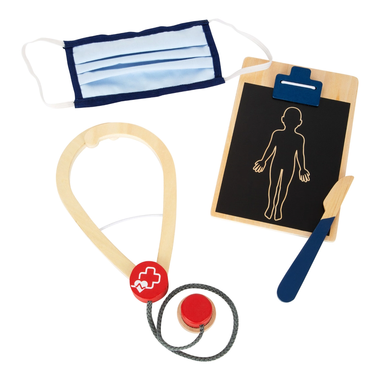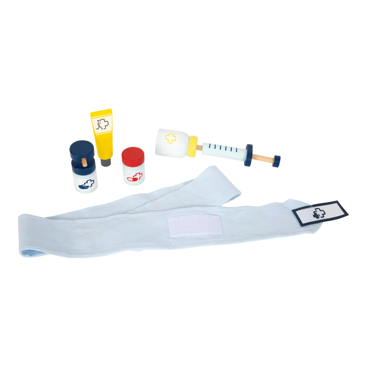 Αυτό το σακίδιο διάσωσης είναι ιδανικό για παιχνίδι ρόλων γιατρού. Στο εσωτερικό θα βρείτε ξύλινα εργαλεία όπως στηθοσκόπιο, θερμόμετρο, ωτοσκόπιο με μεγεθυντικό φακό και ακόμη και απινιδωτή. Τα παιδιά μπορούν να μάθουν να αναγνωρίζουν τον ιατρικό εξοπλισμό και να προσομοιώνουν διαδικασίες διάσωσης.