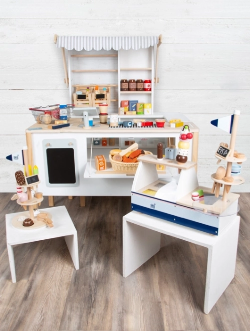 Η ξύλινη βάση για παγωτό Fresh είναι το ιδανικό παιχνίδι για μικρούς πωλητές. Προσφέρει ποικίλες λιχουδιές παγωτού και ένα μαγνητικό σκουπιδάκι σερβιρίσματος που εξασφαλίζει ασφαλή και εύκολο χειρισμό. Με την φυσική της όψη ενθαρρύνει το δημιουργικό παιχνίδι.