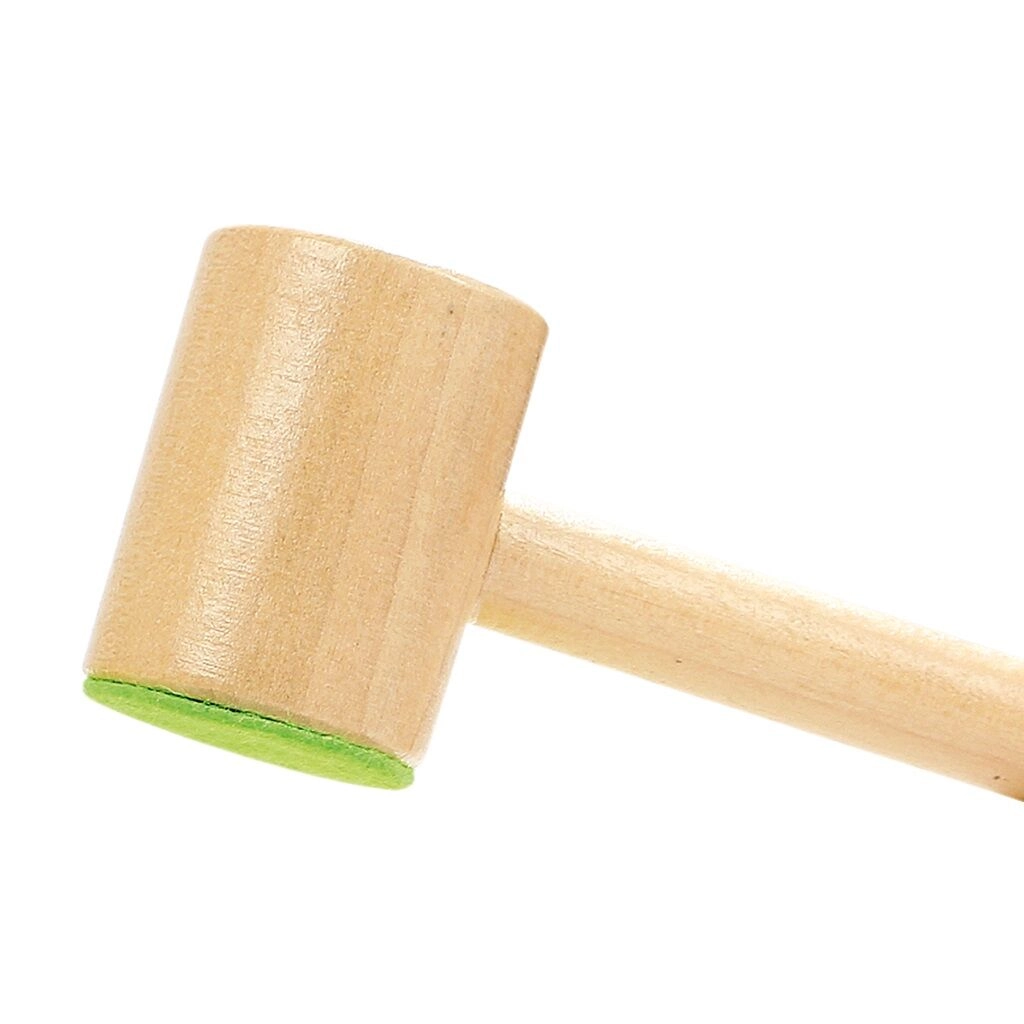 Το ξύλινο σφυράκι με τσόχινη επένδυση μειώνει τον θόρυβο και προστατεύει την επιφάνεια του παιχνιδιού, ώστε το παιχνίδι να είναι ευχάριστο και για τους γονείς.