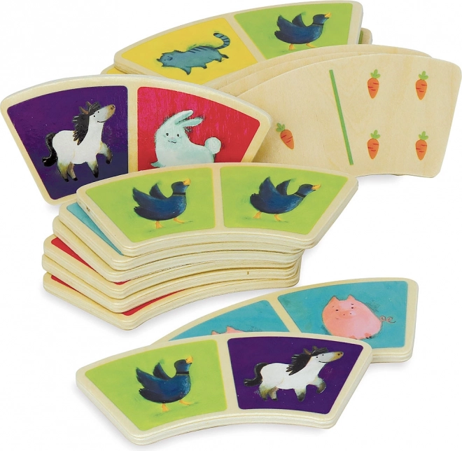 Σετ ξύλινων κομματιών ντόμινο με αγροτικό μοτίβο, ιδανικό για τα μικρότερα παιδιά χάρη στο καμπύλο σχήμα και το επαρκές μέγεθος των κομματιών.