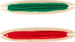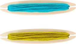 Τέσσερα ξύλινα καρούλια με πολύχρωμη κλωστή και βασικά νήματα σας επιτρέπουν να ξεκινήσετε να δημιουργείτε χωρίς επιπλέον αγορές – απλώς ανοίγετε και υφαίνετε.
