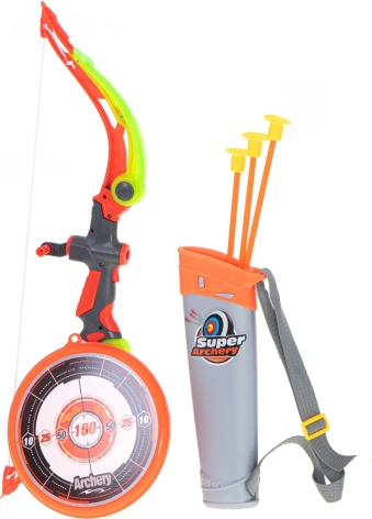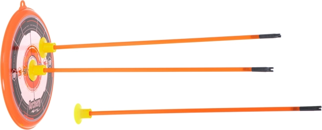 Στη συσκευασία θα βρείτε ό,τι χρειάζεται για άμεση διασκέδαση: τόξο, κρεμαστό στόχο, φαρέτρα και 3 βέλη με βεντούζες.