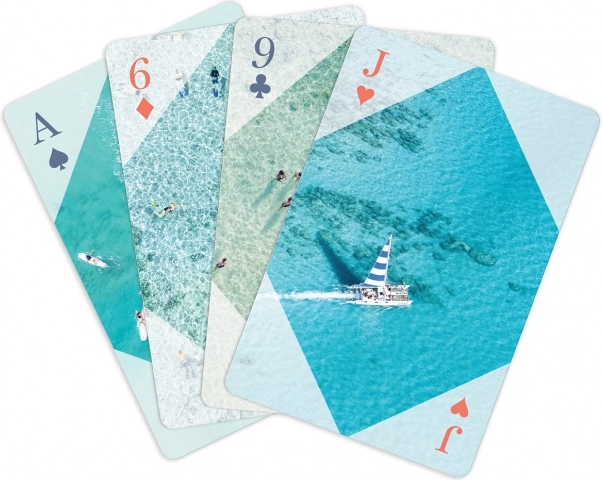 Απολαύστε μια μοναδική εμπειρία παιχνιδιού με αυτό το στιλάτο σετ, που συνδυάζει τα κλασικά στοιχεία τράπουλας με γοητευτικές αεροφωτογραφίες παραλιών. Το σετ περιλαμβάνει δύο τράπουλες με 54 κάρτες η καθεμία, συνολικά 108 κάρτες.
